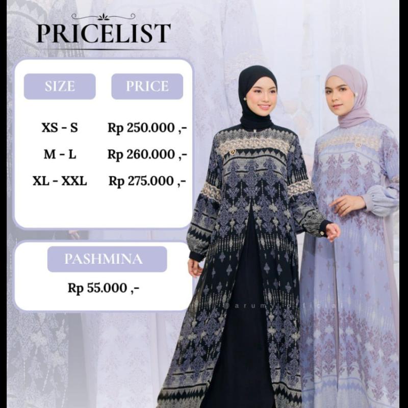 Bismillah… New Katalog Seragaman Ayudia Dress? @arumy.official Ayudia Dress, seperti namanya, merepresentasikan keindahan dan keanggunan dalam setiap detailnya. Dihiasi motif menawan serta sentuhan renda yang mempercantik tampilan, dan menggunakan bahan Rayon Twill Premium berkualitas, dress ini menghadirkan kenyamanan maksimal untuk dipakai seharian. Perpaduan sempurna antara kenyamanan dan keindahan, Ayudia Dress menjadi pilihan tepat untuk tampil cantik dan menawan dalam setiap aktivitasmu? ??Detail : ? Matt Dress : Rayon Twill Premium dengan kombinasi Babydoll motif ? Matt Pashmina : Babydoll Premium ? Terdapat renda cantik pada bagian depan dan lengannya ? Menggunakan resleting pada bagian depan, sehingga busui friendly ? Terdapat saku pada sebelah kanan dress ? Menggunakan lengan manset kancing sehingga wudhu friendly ? Desain belahan layer motif pada bagian depan ?Varian Warna : Dress ? Black ? Irish ? Teal Green ? Hazelnut Pashmina ? Black ? Lilac ? Tosca ? Coksu ? Sizechart : Dress ??XS : LD 84 / PB 125 ??S : LD 90 / PB 131 ?? M : LD 96 / PB 135 ??L : LD 100 / PB 137 ??XL : LD 110 / PB 140 ??XXL : LD 120 / PB 142 Pashmina Panjang x Lebar : 180 x 70 ?? Estimasi Berat : 650-750 gram ?Pricelist : Dress XS-S : Rp 250.000,- M-L : Rp 260.000,- XL-XXL : Rp 275.000,- Pashmina : Rp 55.000,- ?? *Lebih atau Kurang 1-3 Cm* dikarenakan Proses Produksi ?? *Kemiripan warna 90%* , Karena setiap layar HP/PC mempunyai karakteristik yang berbeda. Selain itu efek pencahayaan saat Photoshot bisa saja mempengaruhi tampilan warna pada hasil foto