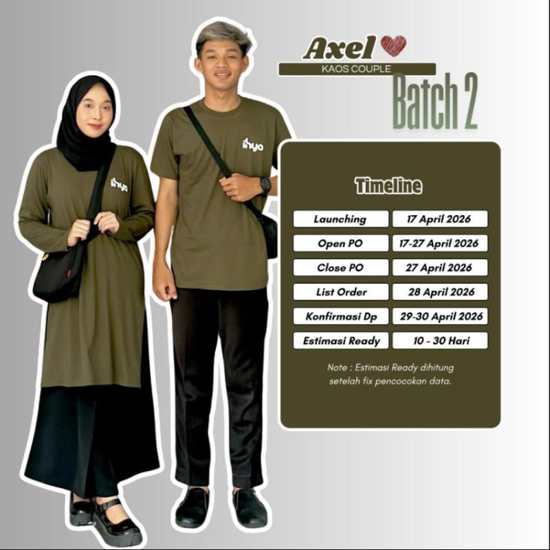 *OPEN PRE-ORDER KAOS COUPLE AXEL BATCH 2 BY IHYA FASHION* Bismillahirrahmanirrahim... Launching perdana Pre Order 17 April - 27 April 2026 *KAOS COUPLE AXEL* by _IHYA FASHION_ siap menjadi FASHION COUPLE pilihan kalian? _2 ARTIKEL BY IHYA FASHION_   1. KAOS PRIA   2. TUNIK KAOS WANITA   ? Spesifikasi • Menggunakan matterial 100% Cotton Combed 24A • Bahan Lembut & nyaman • Sablon Rubber Print HD • Jahit rantai & Double Stitch • Terdapat Label Produk 7 Variasi Warna Kaos Couple _AXEL_ ?? Jet Black ?? Gold Crayola ?? Blue Jeans ?? Army Green ?? Light Brown ?? Red Plum ?? Stone Grey Best Price Kaos Couple _AXEL_ ?KAOS PRIA M ?? Rp 90.000 L ?? Rp 100.000 XL ?? Rp 105.000 ?TUNIK KAOS WANITA M ?? Rp 125.000 L ?? Rp 130.000 XL ?? Rp 135.000 *_BISA REQUEST SIZE_* *DISCLAIMER* ?Ukuran cutting pada setiap size bisa sedikit berbeda karena proses cutting dan setrika saat produksi massal  ?Perbedaan warna -/+ 10 % lebih gelap dari foto. Akurasi 80-90% pengaruh efek cahaya dan tiap hp memiliki resolusi & pencahyaan yang berbeda ?Noda kapur, oil, tidak termasuk reject bisa hilang saat pencucian.