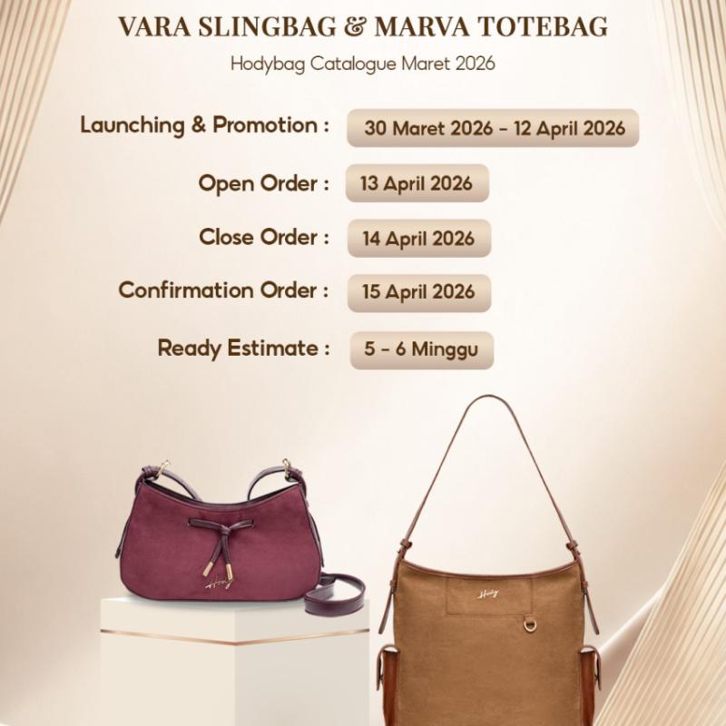 SPESIFIKASI - VARA BAG ? Material : Ultra Soft Suede & Synthetic Leather Combination Size : 26 cm (P) × 8 cm (L) × 15 cm (T) Strap Length : 84 – 134 cm Lining : Satin Weight : 280 gr Logo : Hody Plate Closure Type : Zipper Interior : 1 Main Compartment 1 Zipper Pocket Exterior : Drawstring Accents & Gold Hardware Capacity : Handphone, Charger, Wallet, Mini Perfume, Mini Touch-Up Kit Colors : - Onyx - Ruby - Cocoa - Saddle Price Rp139.000 #vara #TheEveSeries SPESIFIKASI - MARVA BAG ? Material : Ultra Soft Suede & Synthetic Leather Combination Size : 30 cm (P) × 10 cm (L) × 31 cm (T) Handle Length : 94 cm (Drop 26 cm) Lining : Satin Weight : 380 gr Logo : Hody Plate Closure Type : Zipper Interior Detail : 1 Main Compartment 1 Zipper Pocket 1 Inner Insertion Pocket Exterior Detail : 1 Insertion Pocket 2 Side Pockets Keychain Holder Capacity : Book, Tablet/iPad, Handphone, Charger, Wallet, Perfume, Powerbank, Makeup Kit, Travel Prayer Set, Tumbler, Mini Folded Umbrella Colors : - Onyx ? - Ruby ?? - Cocoa ? - Saddle ? ? Price : Rp169.000 #Marva #TheEveSeries