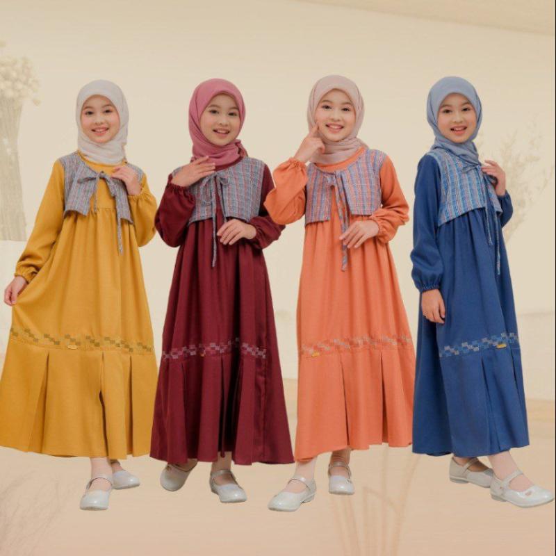 Bismillahirrahmanirrahim New Arrival Rizqia Dress Kids Dress super manis dan  cantik . Di lengkapi dengan vest cerah yang menambah kesan ceria pada ananda. Rizqia dress kids menggunakan material polos shakila premium, dengan karakteristik  serat padat,  flowy, tidak nerwang & nyaman dipakai. Vest menggunakan material rami etnik. ??Spesifikasi Vest menyatu dengan  aplikasi tali dibagian leher. Terdapat tali di kanan kiri. Lengan manset karet,  saku kanan dalam, dan resleting belakang. Terdapat bordir cantik di bagian bawah dress. ??Size chart dress Xs  = ld 60 // pb 62 S   = ld 65 // pb 72 M   = ld 70 // pb 82 L   = ld 75 // pb 92 XL  = ld 80 // pb 102 XXL = ld 85 // pb 112 ?Price List di flyer tersediri Xs : Rp. 140.000. S   : Rp. 145.000 M  : Rp.  150.000 L   : Rp.  155.000 XL : RP.   160.000 XXL : Rp.  165.000 Dengan 4 pilihan warna cantik : Peach Maroon Denim Golden ------------------ ?? *DISCLAMER* * Hasil pencahayaan mempengaruhi tampilan foto * perbedaan warna kurang lebih 10-20% * noda noda kapur jahit atau kotoran yang dapat dicuci tidak termasuk rijek * Toleransi 2-3 cm antara size chat dengan ukuran sebenarnya karena proses pemotongan masal