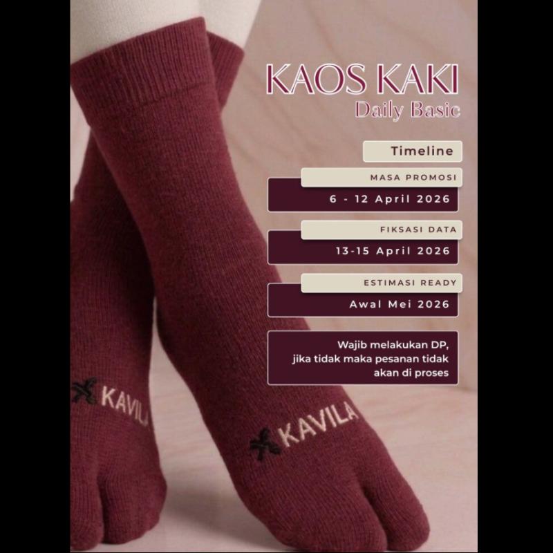 KAOS KAKI Kaos Kaki Daily Basic by kavila.hijab OPEN PO 6-12 APRIL 2026 Nyaman dipakai, simpel, dan wajib punya untuk aktivitas sehari-hari ? Lengkapi kebutuhan harian kamu dengan Kaos Kaki Daily Basic yang dirancang untuk memberikan rasa nyaman, lembut, dan pas saat digunakan. Cocok dipakai untuk berbagai aktivitas seperti sekolah, kerja, kuliah, olahraga ringan, hingga daily wear. Kaos kaki ini memiliki desain yang simple dan basic, sehingga mudah dipadukan dengan berbagai jenis sepatu seperti sneakers, flat shoes, loafers, slip on, hingga sepatu sekolah. ?Spesifikasi: ? Bahan nylon spandex dg kualitas nylon eksport ? Anti melar ? Menyerap keringat ?Tidak berbulu setelah dicuci ? Lembut dan sangat nyaman dipakai ? Detail ukuran +-34 cm ? Harga termurah : hanya : 17.500 ?SIZE CHART panjang : 34 cm lebar : 8 cm lebar karet max : 20 cm ?PILIHAN WARNA: - NAVY - MAHOGANY - BLACK - PINK - KHAKI - MAROON - SILVER - ABU TUA - WHITE ?PRICE : Rp.17.500 ??Disclaimer?? - Hasil pencahayaan pada saat pemotretan serta resolusi kamera maupun smartphone bisa sangat memengaruhi tampilan foto. - Noda-noda kapur jahit ataupun kotoran yang dapat dicuci tidak termasuk reject karena proses di rumah produksi. - Ada toleransi 1-2 cm antara size cart dengan ukuran.