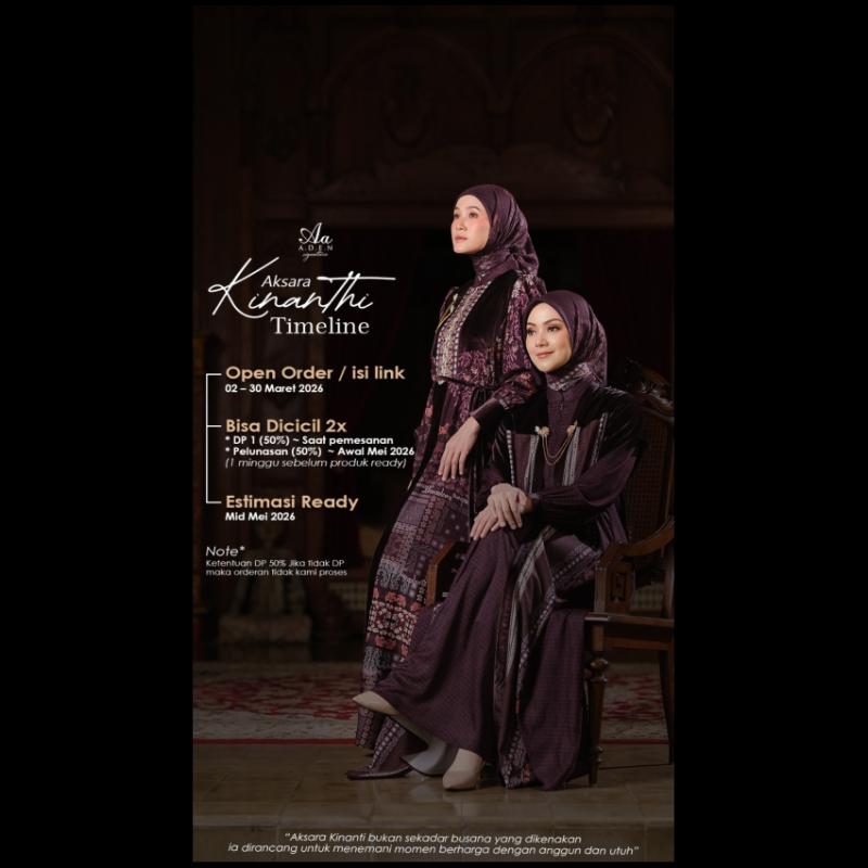? AKSARA KINANTHI by ADEN SIGNATURE ? (Open Pre-Order: 02 - 30 Maret 2026 Ada perempuan yang tak perlu banyak suara untuk didengar. Tak perlu gemerlap untuk terlihat. Ia cukup berdiri — dan dunia tahu, ada wibawa yang tenang di sana. Aksara Kinanti lahir dari filosofi tentang perempuan yang membawa makna dalam setiap langkahnya. “Aksara” adalah simbol cerita. “Kinanti” adalah tuntunan, yang berjalan dengan kelembutan. Setiap detailnya ditulis dengan rasa. Setiap potongannya disusun dengan kehormatan. Bukan hanya tentang indah dipandang, tetapi tentang bagaimana ia membuatmu merasa. Anggun. Tenang. Berkelas tanpa perlu berlebihan. Karena perempuan tidak harus bersinar terlalu terang untuk menjadi pusat perhatian. Ia hanya perlu menjadi dirinya — utuh. Hari ini, kisah itu resmi dimulai. Dan mungkin… kamu adalah tokoh utamanya ? ? MATERIAL PRODUK – AKSARA KINANTI ? ? Pualin ?Halus, lembut, dan flowy — menghadirkan siluet anggun saat melangkah. ? Glassia ? Ringan dan lembut — nyaman dikenakan tanpa mengurangi kesan refined. ? Beludru? kain dengan bulu-bulu pendek rapat di permukaan kain, tekstur sangat lembut, terlihat berkilau jika terkena cahaya, memberi sentuhan mewah yang tenang. ? AYANA VOAL ? Halus, ringan, nyaman, dan elegan untuk pemakaian sehari-hari maupun spesial. ? SPESIFIKASI PRODUK – AKSARA KINANTI ? ? STYLE 1 (INNER - OUTER) ? ?INNER STYLE 1 * Menggunakan bahan Pualin yang halus & flowy * Krah shanghai untuk look elegan * Bukaan ritsleting depan (busui friendly) * Lengan balon dengan kerut manis di manset * Manset detail beludru + kancing (wudhu friendly) * Saku fungsional di sisi kanan dress * Metal tag “Aa” (Aden Signature) sebagai sentuhan eksklusif * Free brooch (random) ?OUTER STYLE 1 - Menggunakan bahan Glassia yang halus & ringan * Model outer loose tanpa kancing (clean & effortless look) * Detail plaket dengan kombinasi kain beludru * Potongan tegas di bagian atas outer * Yoke belakang berbahan beludru yang memberi sentuhan mewah ? STYLE 2 (DRESS MOM) ? * Menggunakan bahan Pualin yang halus & flowy * Krah shanghai dengan sentuhan beludru elegan * Bukaan ritsleting depan (busui friendly) * Potongan dada dengan variasi detail beludru * Yoke belakang dari beludru dengan aksen kerut yang manis * Lengan balon yang anggun * Manset bukaan kancing (wudhu friendly) * Saku fungsional di sisi kanan dress * Metal tag “Aa” (Aden Signature) sebagai sentuhan eksklusif * Free brooch (random) * Free belt dari bahan beludru ? DETAIL SCARF ? - Bahan: Ayana Voal — halus, ringan & nyaman dipakai - Motif: Original pattern by ADEN SIGNATURE - Tepi: Laser cut rapi - Ukuran: 115 x 115 cm (Scarf Standar) - Packaging: - Scarf Only ? Hard box eksklusif - Set Scarf ? Goodiebag ADEN SIGNATURE (menyatu dengan dress) ? DETAIL UMUM – AKSARA KINANTI ? ? Available Colors - Ebony - Jenar - Lazuardi - Mahoni - Perak ?? Item Terjual ? tersedia di @aden_katalog_signature ? Size Chart ? tersedia di @aden_katalog_signature ? Packaging: * Goodiebag — untuk seluruh pembelian dress (termasuk set scarf) * Hard Box — khusus pembelian scarf ? Aksara Kinanti bukan sekadar busana. Ia adalah pernyataan tentang siapa dirimu — tenang, anggun, dan penuh makna.