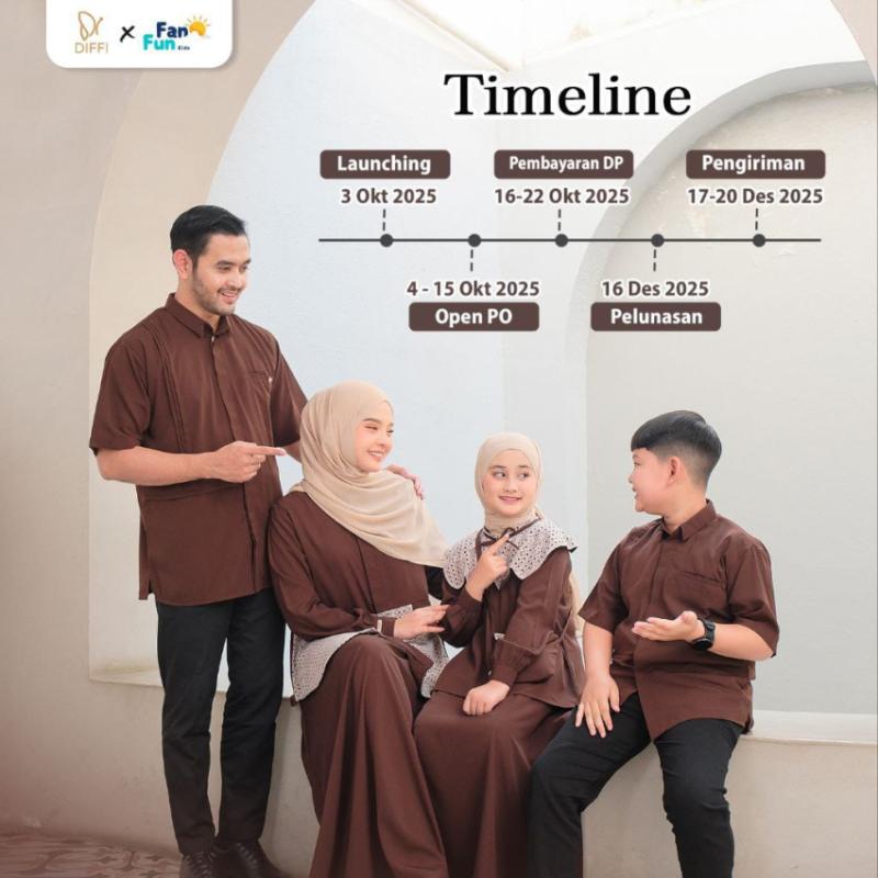 Bismillahirrahmanirrahim ?ROYAL FAMSET? Open PO 4 - 15 Oktober 2025 ROYAL FAMSET Sarimbit yang hadir dengan desain yang stylish kolaborasi antara Diffi dan Fanfun Kids. Royal Famset dipersembahkan untuk menemani momen istimewa bersama keluarga. Dengan pilihan warna yang mewah dan detail yang elegan, Royal Famset menjadi pilihan yang tepat untuk tampil harmonis. MATERIAL Menggunakan bahan Peach Lux Premium (bahannya nyaman, ringan, dan tidak nerawang) ?VARIAN WARNA : 1. Black 2. Burgundy 3. Dark Choco 4. Dark Denim 5. Light Taupe ?DETAIL BLOUSE MOM • Kerah sanghai • Busui Friendly terdapat kancing hidup sampai bawah (sembunyi) • Manset hidup dengan kancing dan dihiasi label plat Diffi • Terdapat kombinasi tulle cantik dibagian depan • Aksen saku (saku mati) ?DETAIL BLOUSE KIDS • Kerah bulat dengan rebah dihiasi tulle cantik dan aksen tali • Terdapat resleting dibagian belakang • Manset hidup dengan kancing ?DETAIL SKIRT MOM & KIDS • Model rok setengah lingkaran • Terdapat saku dibagian kanan • Bagian pinggang full karet ?DETAIL KOKO DAD & KIDS • Kerah kemeja • Kancing hidup sampai bawah (sembunyi) • Terdapat saku dibagian dada kiri • Koko dad terdapat label plat Diffi • Terdapat aksen lipatan dibagian kanan • Koko dad panjang lengan manset dengan kancing ?DETAIL PASHMINA MOM & KIDS • Menggunakan material Ceruty Premium • Jahit pelipit sekeliling pashmina • Pashmina kids terdapat tali Note : • Terdapat sedikit perbedaan dengan warna asli dikarenakan efek cahaya. • Untuk perbedaan warna aslinya kurang lebih 5-10% dari foto #royalfamset #diffi #fanfunkids #sarimbit2026 #iedseries ?PRICELIST ROYAL FAMSET MOM SET (BLOUSE + SKIRT) XS - M : 280.000 L - 2XL : 290.000 3XL - 5XL : 310.000 BLOUSE MOM XS - M : 155.000 L - 2XL : 165.000 3XL - 5XL : 175.000 SKIRT MOM XS - M : 125.000 L - 2XL : 125.000 3XL - 5XL : 135.000 KOKO DAD PENDEK XS - M : 175.000 L - 2XL : 185.000 3XL - 5XL : 195.000 KOKO DAD PANJANG XS - M : 185.000 L - 2XL : 195.000 3XL - 5XL : 205.000 KIDS SET (BLOUSE + SKIRT) Pembelian Kids Set Free Tas XXS - M : 210.000 L - 2XL : 230.000 BLOUSE KIDS XXS - M : 125.000 L - 2XL : 135.000 SKIRT KIDS XXS - M : 85.000 L - 2XL : 95.000 KOKO KIDS XXS - M : 155.000 L - 2XL : 165.000 PASHMINA MOM : 75.000 PASHMINA KIDS : 65.000