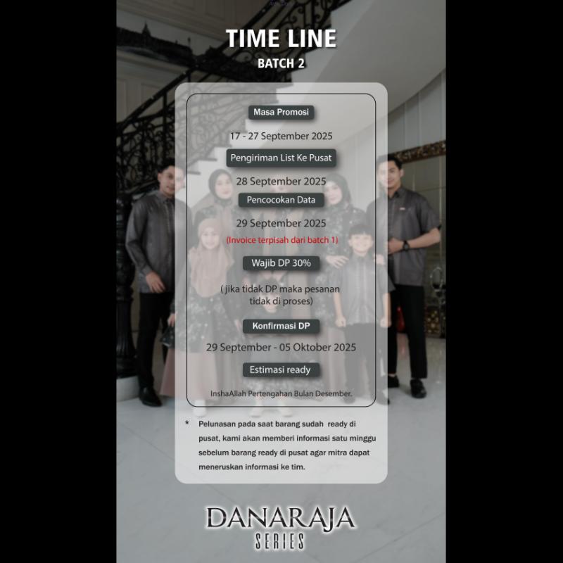 Bismillahirrahmanirrahim….. DANARAJA SERIES by. ARTIE DAILY Open Pre-order 21 Agustus - 1 September 2025 ?Terdapat 06 warna : 1. BROKEN WHITE X MILO 2. SAGE X ROCKY RIVER 3. MIDNIGHT X MAUVE 4. NAVY X TARO 5. CHARCOAL X LAVENDER 6. ?BOTOL X COKSU ? *MATERIAL* : * *MILANO TWILL* (Kain Dasar Dress Inner kids , Dress Inner kode 1 Dan Dress Inner kode 2 ) Menggunakan bahan Milano Twill. Bahan ini memiliki sifat lembut, adem dan nyaman saat dipakai). * *ALLESIA PRINTING* (Kain Dasar Dress kode 3,Dress kode 2 Dan Dress kids pendek) Kain yang diproduksi khusus untuk ARTIE DAILY oleh pabrik pilihan dan dengan design motif exlusive. Kain yang tentunya juga tidak panas saat di gunakan tesktur bahan ini jatuh, halus, dan tentunya tidak mudah kusut juga sangat nyaman di gunakan. • *CERUTY PRINTING* (untuk dress mom kode 1 dan kode 3) Kain yang berdesign motif exlusive Kain yang tentunya tidak panas saat di gunakan tesktur bahan ini jatuh,halus dan tentunya tidak mudah kusut juga sangat nyaman di gunakan. * *CERUTY BABYDOLL*(Untuk Khimar Kids, Pashmina Mom dan outer kode 3) Bahan Cerutty Baby Doll yang tentunya juga tidak panas saat di gunakan tesktur bahan ini jatuh, halus, dan tentunya tidak mudah kusut juga sangat nyaman di gunakan. * *SCARF PRINTING PREMIUM* Memiliki serat yang lembut, mudah dibentuk, dan mudah menyerap keringat sehingga nyaman dipakai). • *DOBBY PRINTING (Untuk bahan kemeja)* Kainya yang diproduksi khusus untuk ARTIE DAILY oleh pabrik pilihan. Dengan pemilihan benang yang berkualitas dan difinishing dengan ketelitian. Kain yang terlihat glosy lembut dan nyaman digunakan. ??*DETAIL DAN SPESIFIKASI* : ? *DRESS MOM KODE 1 (Inner & Outer Setengah terpisah)* Terdiri dari inner dan outer Detail inner: - Menggunakan kerah bulat - Resleting dibagian depan (busui friendly) - Terdapat saku di bagian kanan - Model iner sleeveless (lekbong) - ?Bermotif polos Detail outer : - Menggunakan kerah bulat - ?bagian depan terdapat full variasi kancing miring - ?Wudhu friendly (menggunakan manset kancing) - ?Terdapat metal tag Artie daily di bagian manset sebelah kanan - ?Bermotif eksklusif - ?Terdapat resleting dibagian belakang ? *DRESS MOM KODE 2 (inner & outer full menyatu )* Terdiri dari inner dan outer full menyatu Detail : - Menggunakan kerah sanghai - Resleting dibagian depan (busui friendly) - Terdapat saku di bagian kanan - wudhu friendly (terdapat kancing hidup di bagian manset) - ?terdapat metal tag Artie daily dibagian manset sebelah kanan ?*DRESS MOM KODE 3 (iner & outer terpisah)* Terdiri dari inner dan outer Detail inner: • Berkerah kemeja • Terdapat motif eksklusif • Terdapat metaltag artiedaily dibagian manset sebelah kanan • Terdapat saku pada iner sebelah kanan • Busui Friendly (Terdapat kancing hidup di depan) • Wudhui Friendly (terdapat kancing hidup di bagian manset) • Dibagian iner depan terdapat variasi ruffel kanan dan kiri -Outer • Berkerah bulat • Bermotif polos ? *DRESS KIDS PANJANG (Iner & outer terpisah)* Terdiri dari inner dan outer (terpisah) Detail inner : - Menggunakan kerah bulat - ?Resleting di bagian depan - ?Terdapat saku di bagian kanan - ?model inner sleevelees (lekbong) Detail outer : - Menggunakan kerah bulat - ?di depan terdapat variasi Full kancing miring - ?Wudhu friendly (menggunakan manset kancing) - ?Metal tag Artie daily di bagian manset sebelah kanan ?*DRESS KIDS PENDEK* • Berkerah bulat • Baju depan - belakang terdapat variasi lipatan ruffel • Terdapat metaltag di bagian dada di sebelah kiri • Bermotif eksklusif ?*SCRAFT MOM* - Full Motif - Finishing tepi laser cut - Size chart 115x 115 cm - Berat scraf 110gram per 1pcs - Terdapat metal tag ARTIE DAILY disalah satu sudut voal ?*KHIMAR KIDS* - Menggunakan Cerutty Baby Doll - Menggunakan hard pad - Desain cutting V double layer - Metal tag ARTIE DAILY pada bagian depan ?*PHASMINA MOM* - Menggunakan material ceruty baby doll - Jahit Tepi kecil Full sekeliling Pashmina - Mudah di styling berbagai macam gaya hijab - Metal tag ARTIE DAILY disalah satu sudut ?*DETAIL KEMEJA DAD & KIDS* (Pendek & Panjang) - Menggunakan Kerah kemeja - Full kancing hidup - Terdapat saku di sebelah kanan & metal tag ARTIE DAILY di bagian dada sebelah kiri - Cuttingan modern fit yang mengikuti bentuk tubuh dan bikin look lebih stylish dan rapih - Pada Koko Panjang Terdapat kancing dibagian manset - ?Tampilan kancing di depan tersembunyi agar memberikan look yang clean ?*SIZE CHART INER DRESS MOM KODE 1* XS LD 85 PJ 125 S LD 90 PJ 130 M LD 95 PJ 135 L LD 100 PJ 138 XL LD 104 PJ 140 XXL LD 110 PJ 140 REQ SIZE 3XL LD 120 PJ 140 4XL LD 130 PJ 140 5XL LD 140 PJ 140 ?*SIZE CHART OUTER KODE 1* XS LD 85 PB 80 S LD 90 PB 85 M LD 95 PB 90 L LD 100 PB 93 XL LD 104 PB 95 XXL LD 110 PB 95 REQ SIZE 3XL LD 120 PB 95 4XL LD 130 PB 95 5XL LD 140 PB 95 ?*SIZE CHART DRESS MOM KODE 2* XS LD 85 PJ 125 S LD 90 PJ 130 M LD 95 PJ 135 L LD 100 PJ 138 XL LD 104 PJ 140 XXL LD 110 PJ 140 REQ SIZE 3XL LD 120 PJ 140 4XL LD 130 PJ 140 5XL LD 140 PJ 140 ?*SIZE CHART INER DRESS MOM KODE 3* XS LD 85 PJ 125 S LD 90 PJ 130 M LD 95 PJ 135 L LD 100 PJ 138 XL LD 104 PJ 140 XXL LD 110 PJ 140 REQ SIZE 3XL LD 120 PJ 140 4XL LD 130 PJ 140 5XL LD 140 PJ 140 ?*SIZE CHART OUTER KODE 3* XS LD 85 PB 90 S LD 90 PB 95 M LD 95 PB 100 L LD 100 PB 103 XL LD 104 PB 105 XXL LD 110 PB 105 REQ SIZE 3XL LD 120 PB 110 4XL LD 130 PB 110 5XL LD 140 PB 110 ?*SIZE CHART PASHMINA MOM* ALL SIZE 75 X 175CM ?*SIZE CHART SCARF MOM* ALL SIZE 115 X 115CM ?*SIZE CHART KHIMAR KIDS* SIZE 1 (XS-S) PD 55 PB 70 SIZE 2 (M-L) PD 60 PB 75 SIZE 3 (XL-XXL) PD 70 PB 85 SIZE 4 (3XL) PD 80 PB 90 ?*SIZE CHART INER SLEEVELESS KIDS* XS (06 -12 bulan) LD : 52 PG : 55 cm S (1-2th) -LD : 56 cm PG : 63 cm M (3 -4th) -LD : 65 cm PG : 72 cm L (5- 6th) -LD : 70 cm PG : 85 cm XL (7-8th) -LD: 75 cm PG : 95 cm XXl (9-10th) -LD : 80 cm PG : 105 cm REQ SIZE DRESS KIDS 3XL (11-12th) -LD : 90 cm PG : 122 cm ?*SIZE CHART TUNIK KIDS* XS (06 -12 bulan) LD : 52 PB : 35 cm S (1-2th) LD : 56 cm PB : 