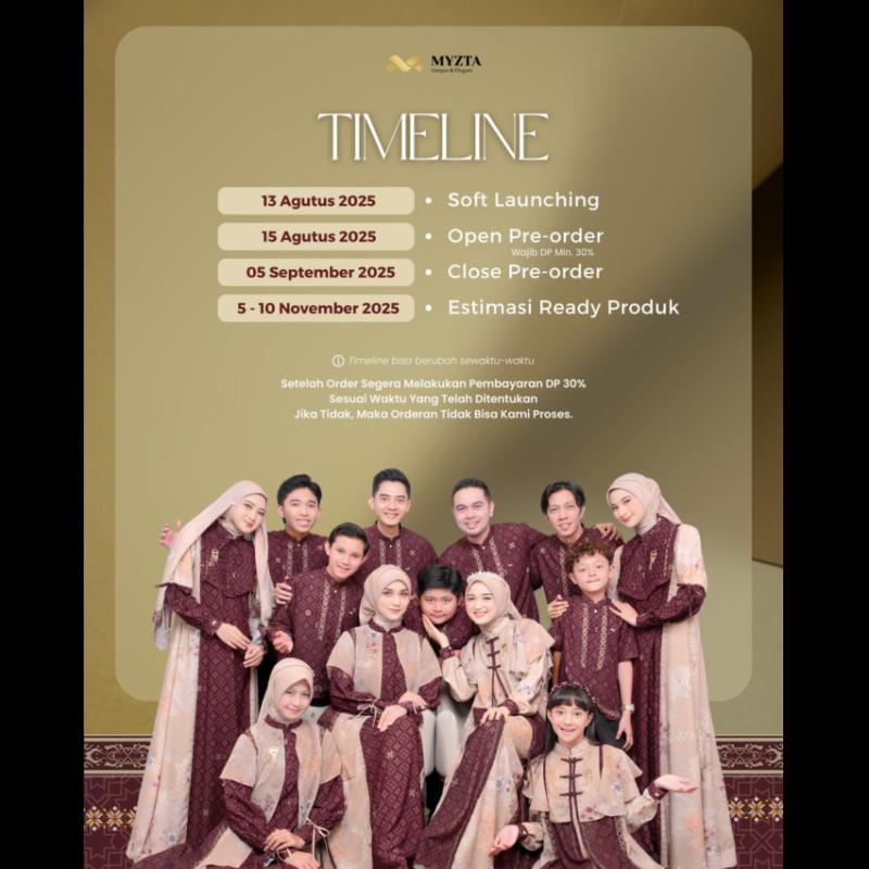 13 Agustus 2025 – Soft Launching 15 Agustus 2025 – Open Pre-Order 05 September 2025 – Close Pre-Order 05–10 November 2025 – Estimasi Produk Siap Kirim