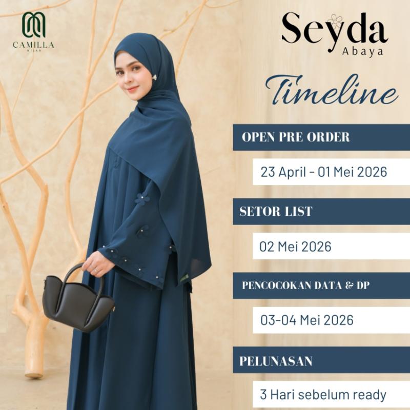 Bismillahirrahamannirrahim.. OPEN ORDER SEYDA ABAYA by CAMILLA HIJAB • 5 pilihan warna cantik ?BLACK ? MAROON ? MAHOGANY ? EMERALD ?IVORY ?PLUM Keterangan : •Untuk bahan Dress menggunakan bahan sabrina anti uv ( lembut,adem,dipakai tidak mudah kusut, jatuh dan tidak menerawang, nyaman dipakai) ABAYA •Menggunakan bahan Sabrina anti uv •Busui friendly • ?Wudhu Friendly •Terdapat bunga cantik dengan tambahan mute yang bikin abaya terlihat lebih cantik PASHMINA •Menggunakan bahan Sabrina Keterangan size, jadwal PO, dan harga ada di foto yaa Dear?
