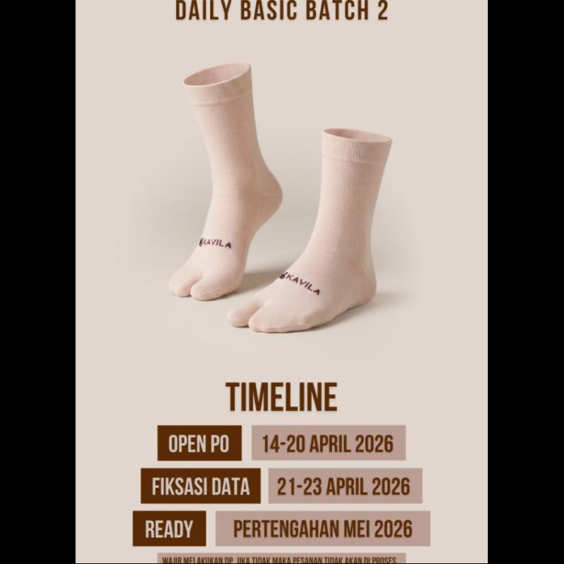KAOS KAKI Kaos Kaki Daily Basic by kavila.hijab OPEN PO 14-20 APRIL 2026 Nyaman dipakai, simpel, dan wajib punya untuk aktivitas sehari-hari ? Lengkapi kebutuhan harian kamu dengan Kaos Kaki Daily Basic yang dirancang untuk memberikan rasa nyaman, lembut, dan pas saat digunakan. Cocok dipakai untuk berbagai aktivitas seperti sekolah, kerja, kuliah, olahraga ringan, hingga daily wear. Kaos kaki ini memiliki desain yang simple dan basic, sehingga mudah dipadukan dengan berbagai jenis sepatu seperti sneakers, flat shoes, loafers, slip on, hingga sepatu sekolah. ?Spesifikasi: ? Bahan nylon spandex dg kualitas nylon eksport ? Anti melar ? Menyerap keringat ?Tidak berbulu setelah dicuci ? Lembut dan sangat nyaman dipakai ? Detail ukuran +-34 cm ? Harga termurah : hanya : 17.500 ?SIZE CHART panjang : 34 cm lebar : 8 cm lebar karet max : 20 cm ?PILIHAN WARNA: - NAVY - MAHOGANY - BLACK - PINK - KHAKI - MAROON - SILVER - ABU TUA - WHITE ?PRICE : Rp.17.500 ??Disclaimer?? - Hasil pencahayaan pada saat pemotretan serta resolusi kamera maupun smartphone bisa sangat memengaruhi tampilan foto. - Noda-noda kapur jahit ataupun kotoran yang dapat dicuci tidak termasuk reject karena proses di rumah produksi. - Ada toleransi 1-2 cm antara size cart dengan ukuran.