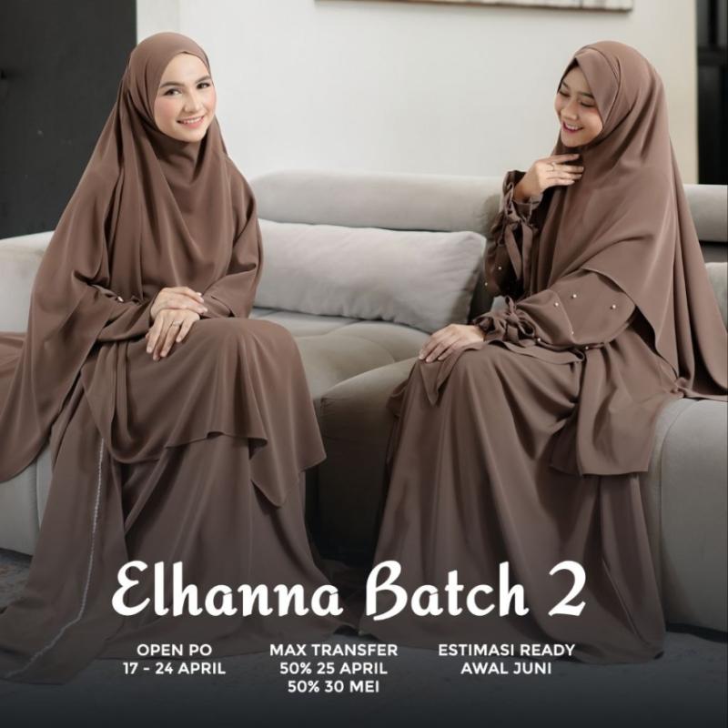 Bismillah... Bismillah... Bismillah... Exclusive, Modest & Syar’i. Abaya Elhanna Open PO lagi ?? Dengan material utama Elmira, yang bertekstur lembut, dingin, jatuh, tidak menerawang & tidak mudah kusut. Dibanderol dengan harga yang super hemat untuk setiap produknya. The real definisi “Best Materials & Best Price” untuk pakaian keluarga tercinta. *Promo Spesial* •Diskon 40k untuk Pembelian Set Abaya & Khimar Moms •Free Cadar untuk Pembelian Khimar Bandana Moms *Available in 4 Colors* * Black * ?Khaki * Walnut * Burgundy *JADWAL PRE ORDER* •Open PO : 08 - 15 April 2026 •Batas Transfer : 50% 16 April 2026 50% 30 Mei 2026 •Estimasi ready Awal Juni *SPESIFIKASI ABAYA PEARL* *Material elmira yang lembut, halus, jatuh, dingin, tidak mudah kusut & super nyaman *Kerah Shanghai *Resleting depan (busui friendly) *Di bagian depan & belakang terdapat aksen layer yang menyatu/menempel sehingga looknya seperti memakai tunik & rok *Detail lengan balon dengan aksen mutiara di bagian keliling bawah lengan dan manset karet pita super cantik *Saku kanan *Lebar bawah 2,5 - 2,8m *SPESIFIKASI ABAYA PAYET* *Material elmira yang lembut, halus, jatuh, dingin, tidak mudah kusut & super nyaman *Resleting depan (busui friendly) *Terdapat variasi bukaan dibagian depan dengan tali kecil yang bisa diikat sehingga looknya seperti memakai outer, plus terdapat aksen payet vertikal yang super cantik *Manset resleting, terdapat detail aksen gold buttons di bagian atas manset & detail lekukan cantik di ujung tangan *Saku kanan *Lebar bawah 2,5 - 2,8m *SPESIFIKASI KHIMAR BANDANA* *Material elmira yang lembut, halus, jatuh, dingin, tidak mudah kusut & super nyaman *Detail bagian atas wajah khimar terdapat tali bandana yang bisa diikat ke luar atau ke dalam (2 style) *Desain khimar runcing untuk memudahkan aktifitas *SPESIFIKASI FRENCH KHIMAR* *Material elmira yang lembut, halus, jatuh, dingin, tidak mudah kusut & super nyaman *Desain french khimar terbaru yang lebih simple, sat set & fit di wajah *Bisa di pakai dengan 2 style yang berbeda (dengan atau tanpa cadar)