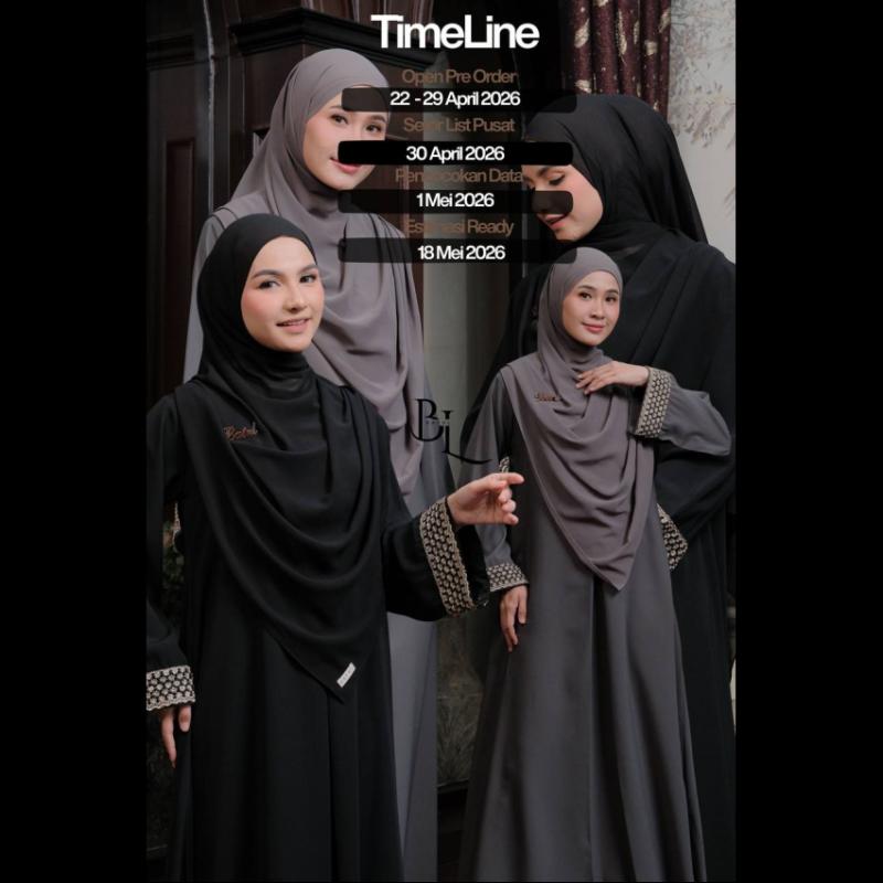 Bismillah , Open Pre Order *Shafira Abaya* ??BATUL HIJAB?? ?Start PO dari 22 - 29 April 2026 ?Deskripsi Produk : material Dress : Wolpeach Premium Material pashmina : Cerutty • Ceruty : Karakteristik halus, adem, lembut, jatuh, nyaman digunakan. • Wolpeach Premium : Karakteristik tekstur kain yang flowly, halus, ringan, menyerap keringat, nyaman digunakan ?Keunggulan Dress : • Model Loss di lengkapi dg ziper panjang pada bagian dada (BUSUI Friendly) , sehingga memberi kesan slim dan terlihat jenjang bagi pemakainya • Bagian leher menggunakan Kerah bulat biasa • Lengan model loss (wudhu Friendly) • Saku hidup di sebelah kanan • Aksen renda premium pada bagian lengan kanan dan kiri ?Size Chart Dress XS / S / M / L / XL / XXL ?Spesial Color : Black Dark Grey ?Special Promo? ? Dress Only XS - XL : 149K (XXL +20K) ? Dress Set Pasmina XS - XL : 194K (XXL +20K) ? Pasmina Only All Size : 60K ?Pembelian Set Hemat 15K? *Broch hanya sebagai aksesoris* ?Note: • Kemiripan warna pada gambar 80% - 90% mendekati warna asli, karena dipengaruhi cahaya pada saat pengambilan foto ataupun resolusi layar pada device masing-masing • Kepekatan warna satu baju dengan yang lain nya bisa saja ada perbedaan seulas karena proses celup yg bertahap • Toleransi ukuran 2-3cm karena produksi massal • Noda yang bisa hilang saat di cuci bukan termasuk reject • Wajib DP, Minimal DP Rp 50.000/pcs