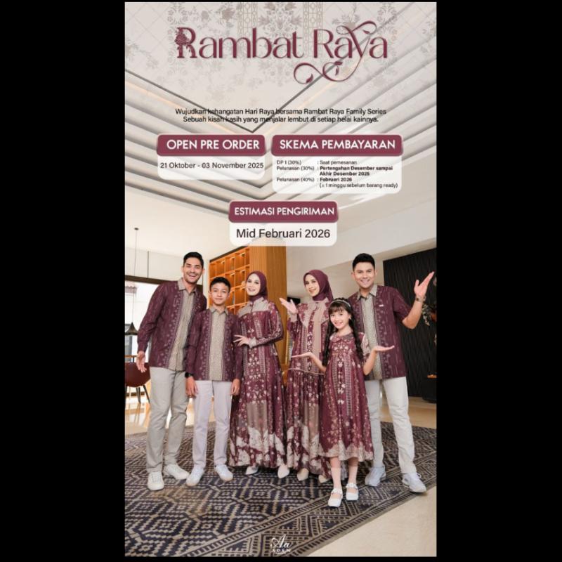 ? Rambat Raya Family Series 2026 by @a.d.e.n_hijab ? (Open Pre-Order: 21 Oktober - 03 November 2025) Keluarga bukan hanya tentang tinggal di satu atap. Keluarga adalah tentang menjadi satu dalam cinta, saling merambat, dan tumbuh bersama dalam setiap momen yang kita ciptakan. Dengan Rambat Raya Family Series, keluarga merayakan Hari Raya bersama dalam harmoni—menyambut kemenangan dengan penuh cinta, kehangatan, dan kebersamaan yang abadi. ? Rambat Raya — motif untuk keluarga yang selalu dekat, tumbuh bersama, dan merayakan setiap momen Idul Fitri dengan hati yang penuh cinta. ? Material Produk ? ? CHARLEN ? Halus, ringan, berkilau, dan lembut. ? BELFORD ? Tekstur tegas, halus, nyaman, dan adem. ? CERUTY BABY DOLL ? Butiran seperti pasir, berserat, lembut jatuh, mudah dibentuk. ? VELVET VOAL ? Halus, lembut, ringan, serta nyaman dipakai. ? Spesifikasi Produk? ? DETAIL DRESS STYLE 1 * Bahan: CHARLEN * Krah: Shanghai dengan rumah tali * Bukaan: Kancing depan (busui-friendly) * Detail V-Line: Potongan membentuk garis V dengan variasi plaket ceruty * Detail bawah dress: Potongan dengan variasi plaket ceruty * Saku: di samping kanan dress * Lengan: Balon dengan manset smock dan ruffle ceruty (wudhu-friendly) * Aksesori: Metal tag A.D.E.N, FREE BELT, FREE BROOCH ? DETAIL DRESS STYLE 2 * Bahan: CHARLEN * Krah: Shanghai * Bukaan: Ristleting depan (busui-friendly) * Detail depan: Potongan dengan variasi list ceruty * Samping Dress: Variasi plaket dengan tali di kanan & kiri * Lengan: Lurus dengan variasi lipit * Manset: Variasi ruffle dengan bukaan kancing (wudhu-friendly) * Saku: Samping kanan * Aksesori: Metal tag A.D.E.N- FREE BROOCH ? DETAIL DRESS KIDS PANJANG * Bahan: CHARLEN * Leher: Garis leher bulat * Bukaan: Ritsleting * Lengan: Lurus dengan variasi ruffle pada manset * Manset: Kancing sengkelit * Saku: Samping kanan * Aksesori: Metal tag A.D.E.N * Tali: Di depan dan belakang dress * Catatan: Terdapat sedikit perbedaan motif pada setiap dress kids karena penempatan cutting kain yang berbeda. ? DETAIL DRESS KIDS PENDEK * Bahan: CHARLEN * Krah: Rebah dengan daun krah bulat * Bukaan: Ritsleting * Lengan: Balon * Detail Depan: Potongan dan variasi kerut * Saku: Samping kanan * Aksesori: Metal tag A.D.E.N * Catatan: Terdapat sedikit perbedaan motif pada setiap dress kids karena penempatan cutting kain yang berbeda. ? DETAIL KOKO DAD & KOKO KIDS * Bahan: BELFORD * Pilihan Lengan: Panjang & pendek * Krah: Kemeja * Bukaan: Kancing tertutup full sampai bawah * Saku: Samping kiri * Belakang: Terdapat yoke dan lipit * Manset (lengan panjang): Bukaan kancing * Aksesori: Metal tag A.D.E.N. ? SCARF * Bahan: Velvet Voal * Motif: Pattern asli Rambat Raya by @a.d.e.n_hijab * Tepi: Laser cut rapi dengan detail titik tiga * Ukuran: All size (115 x 115 cm) * Metal tag Aa * Packaging: Scarf only ? Soft Box - Set dress ? Goodiebag ? SEGIEMPAT OVAL * Bahan: CERUTY BABY DOLL * Ukuran: 120 x 120 cm * Aksesori: Metal tag A.D.E.N di ujung segiempat ? PASHMINA * Bahan: CERUTY BABY DOLL * Ukuran: Standar 180 x 70 cm * Aksesori: Label A.D.E.N di ujung pashmina ? BERGO KIDS * Bahan: CERUTY BABY DOLL * Ukuran: Toddler (XXS) Size 1 (XS–M) Size 2 (L–XXL) * Fitur: Tidak menggunakan pad * Tali: Di kanan dan kiri bergo * Aksesori: Metal tag A.D.E.N, Label A.D.E.N di ujung depan bergo ? DETAIL UMUM ? Pilihan Warna (5 warna tersedia): * Dark Mahogany * Maple * Ivory * Shadow * Sky Blue ?? Item Terjual & Price List: Tersedia di @aden_katalog_pusat ? Size Chart: Tersedia di @aden_katalog_pusat ?? Berat Produk: Tersedia di @aden_katalog_pusat ? Packaging: Goodiebag ? Semua dress termasuk set scarf Soft Box ? Scarf only #rambatraya #sarimbitrambatraya #rambatrayabyadenhijab #rayakandenganrambatraya #sarimbitadenhijab #ingatlebaraningatadenhijab #lebaranbersamaaden #sarimbit2026 #famsetaden #sarimbitlebaran
