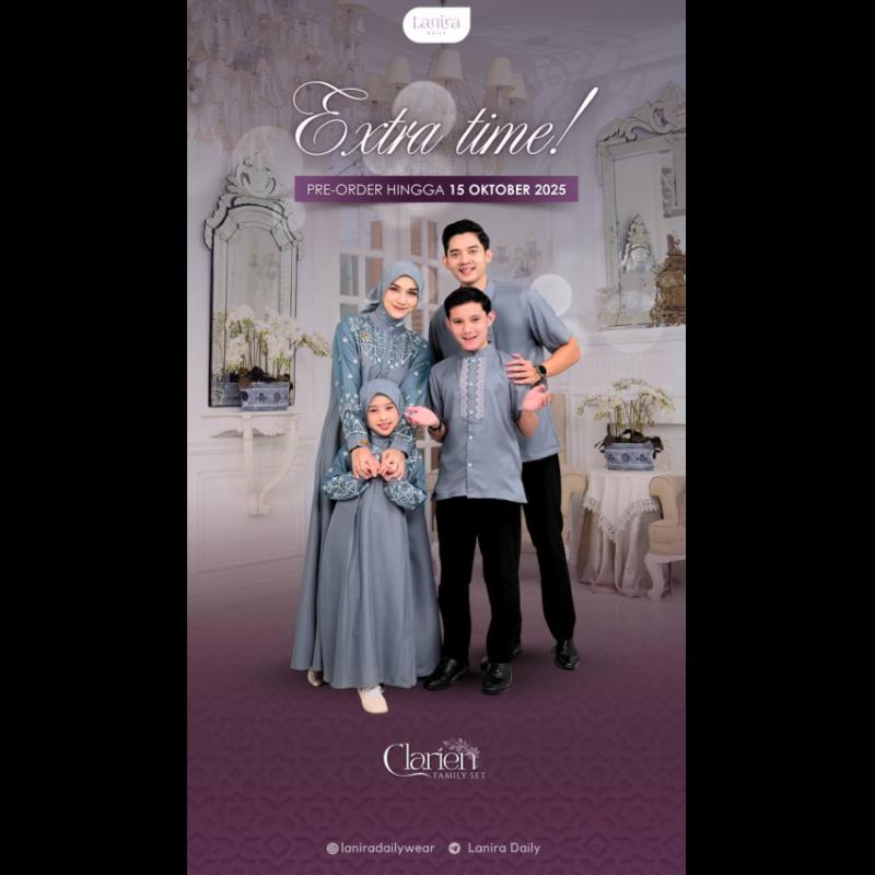*Lanira Daily* Present ? Clarien Famset ? Clarien yg berarti cahaya, terang, bersinar?? Clarien Family series ? Tampil mewah, cantik dan bersinar di hari Raya ? Spesial kami persembahkan untuk Lanira lovers ?? Clarien Famset by @laniradailywear Open 24 sept - 10 okt 2025 Deskripsi bahan : 1. Bahan polos : Tiffany twill Karakteristik bertekstur lembut adem tidak terawang , sedikit stretch , flowy dan nyaman dipkai 2. Kombinasi tulle brukat dengan motif etnik yg dibordir halus. Karakteristik bahan : ringan, halus, transparan , sedikit tebal namun tetap terkesan jatuh , biasa digunakan untuk membuat gaun ataupun dress yg mewah. Deskripsi produk ??dress style 1 • krah sanghai • busui sleting depan • Gamis cutting los abaya tanpa tali pinggang • Terdapat kombinasi tulle brukat layer depan dan belakang semi outer dengan tali samping kanan dan kiri • lengan wudhu friendly manset kancing • rok lebar swingable ??Detail dress style 2 • krah sanghai • Terdapat kombinasi tulle brukat di bagian lengan dan dada • terdapat sleting dibagian dada busui friendly • lengan wudhu friendly manset kancing • terdapat lipit cantik dress bagian bawah dada sampai kebawah • dress cutting loss abaya • rok lebar swingable ??Detail dress style 3 • krah sanghai • ?busui friendly sleting depan • ?terdapat kombinasi tulle brukat bagian depan dan belakang semi outer • ?manset kancing wudhu friendly • ?dress cutting loss semi abaya • ?rok lebar swingable ??Detail koko • kerah koko sanghai • full kancing depan dengan kombinasi bordir motif etnic bagian depan atas • terdapat saku samping • terdapat plat label lanira daily ??Detail khimar • Khimar 1 layer berbahan sama dengan dress pola V • softpad antem • terdapat plat label lanira daily bagian depan khimar ??Detail Scraf • scraf berbahan voal basic premium • motif etnic cantik matching dengan tulle bordir ala lanira daily • cutting laser pinggir • mudah diatur dan dibentuk Disclaimer ?? • perbedaan warna real 10-20% dengan warna di katalog karna efek lighting dan editing • ?resolusi masing2 gadget yg berbeda sehingga warna pun sedikit berbeda • ?terdapat selisih size 2-3cm karna adanya produksi/ cutting masal mohon di halalkan. ??Pilihan warna 1. Burgundy 2. Green 3. Navy 4. Latte 5. Rosetaupe 6. ?Stone Yuk jangan sampai ketinggalan Pre Order Clarien Famset ? Bisa order melalui mitra terdekat ?