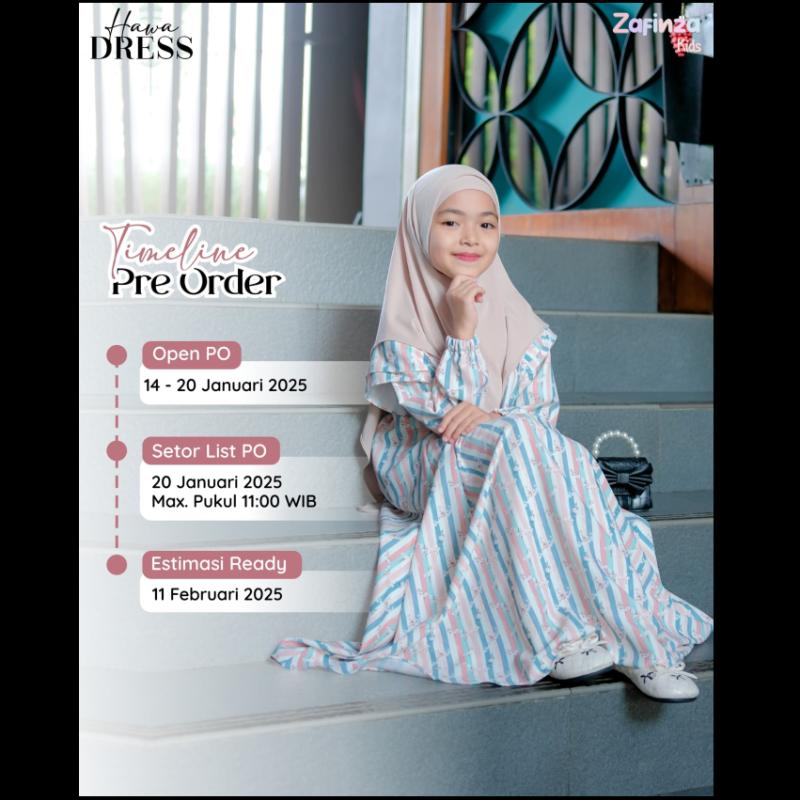 Bismillah.. MasyaAllah Tabarakallah Open PO produk terbaru Hawa Oneset dan Hawa Dress??? Hawa Dress dan Oneset menggunakan kain poka anti uv dengan karakteristik kain yg lembut, halus, jatuh (flowy), adem banget dan tidak mudah kusut jadi nyaman banget di pake? Hawa Dress dan Oneset tersedia dalam 6 varian motif: Rose Peony Daisy blue Midnight Candy Taffy ?Size Chart Hawa Dress NB (0-3 bln) : LD 50 / PB 46 XS (3 -12 bln) : LD 56 / PB 55 S (1-2 thn) : LD 60 / PB 60 M (2-3 thn) : LD 66 / PB 70 L (4-5 thn) : LD 70 / PB 80 XL (5-6 thn) : LD 73 / PB 85 XXL (7-8 thn) : LD 77 / PB 95 XXXL (9-10 thn) : LD 80 / PB 110 XXXXL (11-12 thn) : LD 85 / PB 120 ?Size Chart Hawa Oneset NB (0-3 bln) : LD 50 / PB 30 / PC 40 XS (3 -12 bln) : LD 56 / PB 33 / PC 45 S (1-2 thn) : LD 60 / PB 35 / PC 50 M (2-3 thn) : LD 66 / PB 41 / PC 55 L (4-5 thn) : LD 70 / PB 45 / PC 60 XL (5-6 thn) : LD 73 / PB 47 /PC 65 XXL (7-8 thn) : LD 77 / PB 50 / PC 75 XXXL (9-10 thn) : LD 80 / PB 56 / PC 81 XXXXL (11-12 thn) : LD 85 / PB 62 / PC 88 ?Size Chart Hawa Dress Mom M : LD 96 / PB 130 L : LD 100 / PB 135 XL : LD 110 / PB 140 ?Size Chart Hawa Oneset Mom M : LD 96 / PB 64 / PC 92 L : LD 100 / PB 67 / PC 95 XL : LD 110 / PB 70 / PC 98 ?Open PO tanggal 14 - 20 Januari 2026 ? Estimasi ready 11 Februari 2026 (pengiriman kami utamakan Luar Jawa Terlebih dahulu) ?Tidak Ada DP yaa bisa nabung dulu?