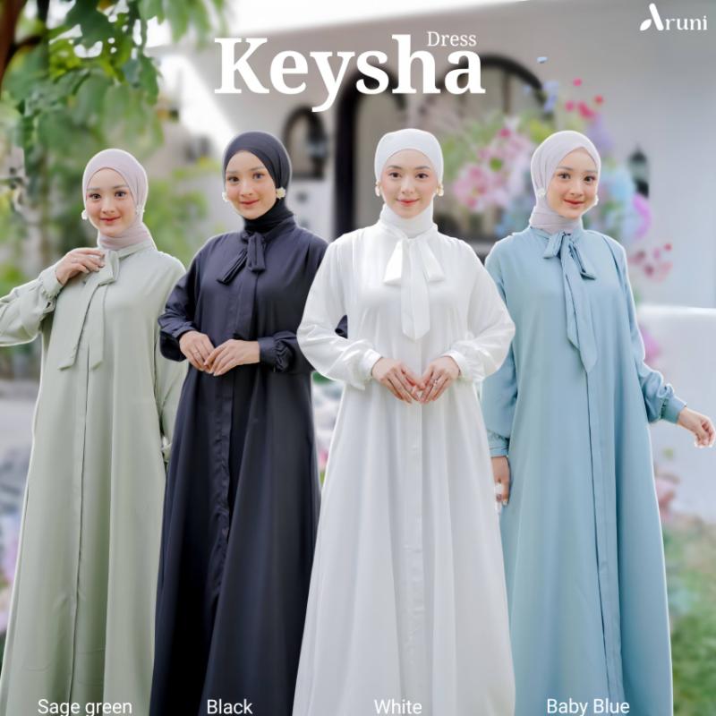 ?bismillah... Spesial di bulan syawal ini Aruni kembali menghadirkan Produk best seller kesayangan sahabat Ar. ?Keysha dress Edisi Sepesial menyambut idul adha pastinya harganya bakalan lebih hemat dan pilihan warna superrr lengkap. Keysha dress, gamis simple dengan designnya yang Anggun. Terbuat dari bahan shakilla, tekstur kain halus, jatuh, dan inshaa Alloh adem. Dan Suguhan warna-warna yang best seller. ?Detail dress : keysha dress Terdapat aksen tali, yang bisa dibentuk menjadi Pita, sehingga menambah look semakin cantik dan anggun. Tentunya, busui friendly dan wudhlu friendly. ? Pilihan warna : - black - sage - baby blue - white ? Size Chart : XS ld 90 pb 130 S ld 94 pb 135 M ld 100 pb 138 L ld 104 pb 140 Xl ld 110 pb 140 Xxl ld 120 pb 140 Spesial edisi kali ini, Keysha dress lebih hemat cuma 139.000 saja.