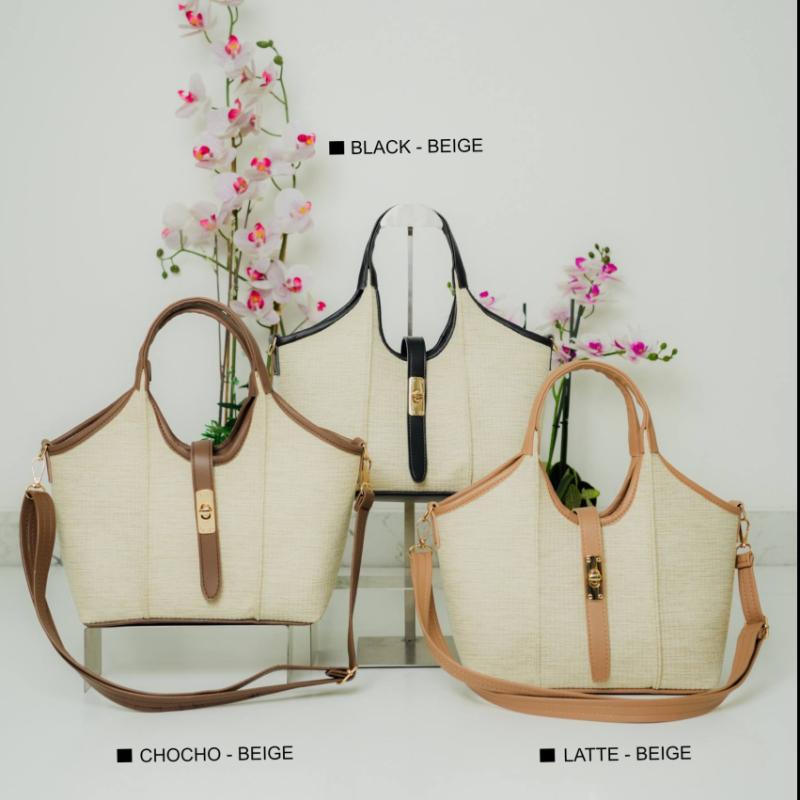 Aruni bag by Nakka Product Knowladge Material : Canvas kombinasi mirable leather dengan karakteristik yang halus Ruang tas : 1 ruang Lining/ lapisan dalam : Menggunakan lining satin * ?Menggunakan resleting sebagai penutup * ?Strap tengah dengan ornamen kancing putar * Design tas trapesium * ?Aksen jahit depan belakang * ?Double strap panjang -+24cm * ?Berat 300-+gr * ?Terdapat 3warna ?Black - Beige ?Chocho - Beige ?Latte - Beige Detail Size Panjang : -+30cm Tinggi : -+17cm Lebar : -+10cm Disclaimer : Untuk warna pada foto bisa jadi ada perbedaan 10-20% karena pencahayaan dan proses editing,kami akan memberikan beberapa referensi untuk mendapatkan warna paling mendekati