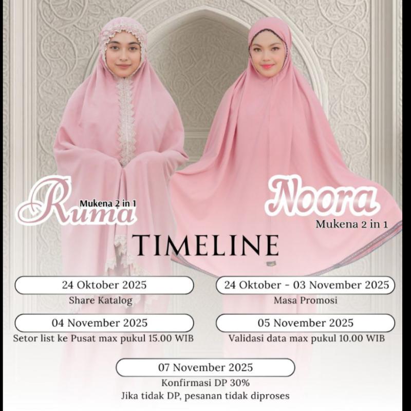 Bismillah… New Katalog Mukena Katun Premium Ruma Mukena by @comfie.pusat? Ruma Mukena hadir dengan desain indah yang elegan. Dipercantik dengan aksen renda disekeliling wajah, bagian depan, dan bagian bawah atasan yang memberikan sentuhan mewah tanpa berlebihan. Berbahan Katun Mikro Premium yang halus, adem dan tidak menerawang. Warna-warna pastel dipilih demi menambah kesan lembut, dan tenang. Rasakan kelembutannya menemani setiap sujud dan dzikir. Ruma Mukena sahabat terbaik dalam do'a, nyaman dikenakan, dan indah di pandangan?? ??Detail : ? Matt : Katun Mikro Premium ? Desain renda disekitar wajah, depan, dan bagian bawah atasan Mukena yang mempermanis tampilannya ? Terdapat resleting pada bagian bawah dagu sehingga dapat dijadikan Mukena ponco (2 style) ? Dilengkapi dengan karet di bagian dahi, sehingga menutup aurat dengan sempurna ?Terdapat tali yang dapat diadjustable sehingga memudahkan saat dikenakan ? Free bag cantik dengan warna senada ?Varian Warna : ? Sage Green ? Black ? White ? Mauve ? Tosca ? Dusty Pink ? Sizechart : * P. Depan : 118 cm * P. Belakang : 121 cm * P. Bawahan : 116 cm * Lingkar Bawahan : 146 cm * Lingkar Pinggang : 52-136 cm ?? Estimasi Berat + bag : 600 gram ?Pricelist : ~Rp 200.000 ,-~ Spesial price : Rp 140.000 ,- ??Lebih atau Kurang 1-3 Cm dikarenakan Proses Produksi ?? Kemiripan warna 90%, Karena setiap layar HP/PC mempunyai karakteristik yang berbeda. Selain itu efek pencahayaan saat Photoshot bisa saja mempengaruhi tampilan warna pada hasil foto #mukenanyaman #mukenakatunmikro #mukenacantik #mukenarenda #mukenaringan #mukenabagus #mukenakekinian #mukenaadem #mukenalembut #mukenaruma #mukenacomfie #comfiepusat Bismillah… New Katalog Mukena Katun Premium Noora Mukena 2 in 1 by @comfie.pusat? Noora Mukena hadir dengan design menawan yang elegan dipercantik dengan aksen renda hitam disekeliling wajah dan bagian bawah atasan mukena yang memberikan sentuhan indah disetiap tampilannya. Berbahan Katun Mikro Premium yang halus, adem dan tidak menerawang. Warna-warna pastel dipilih demi menambah kesan lembut, dan tenang. Setiap doa pantas diselimuti keindahan. Noora Mukena menemani langkah menuju-Nya, indah dipandang, & nyaman dikenakan ?? ??Detail : ? Matt : Katun Mikro Premium ? Desain renda disekitar wajah dan bagian bawah atasan Mukena yang mempermanis tampilannya ? Dilengkapi dengan karet di bagian dahi, sehingga menutup aurat dengan sempurna ? Terdapat tali yang dapat diadjustable sehingga memudahkan saat dikenakan ? Terdapat resleting pada bagian bawah dagu sehingga dapat dijadikan Mukena ponco (2 style) ? Free bag cantik dengan warna senada ?Varian Warna : ? Mauve ? Hazelnut ? Black ? Dusty ? Tosca ? Army ? Sage Green ? Sizechart : * P. Depan : 115 cm * P. Belakang : 120 cm * P. Bawahan : 114 cm * Lingkar Bawahan : 146 cm * Lingkar Pinggang : 62-124 cm ?? Estimasi Berat + bag : 550 gram ?Pricelist : ~Rp 200.000 ,-~ Spesial price : Rp 120.000 ,- ??Lebih atau Kurang 1-3 Cm dikarenakan Proses Produksi ?? Kemiripan warna 90%, Karena setiap layar HP/PC mempunyai karakteristik yang berbeda. Selain itu efek pencahayaan saat Photoshot bisa saja mempengaruhi tampilan warna pada hasil foto #mukenanyaman #mukenakatunmikro #mukenacantik #mukenarenda #mukenaringan #mukenabagus #mukenakekinian #mukenaadem #mukenalembut #mukenanoora #mukenacomfie #comfiepusat
